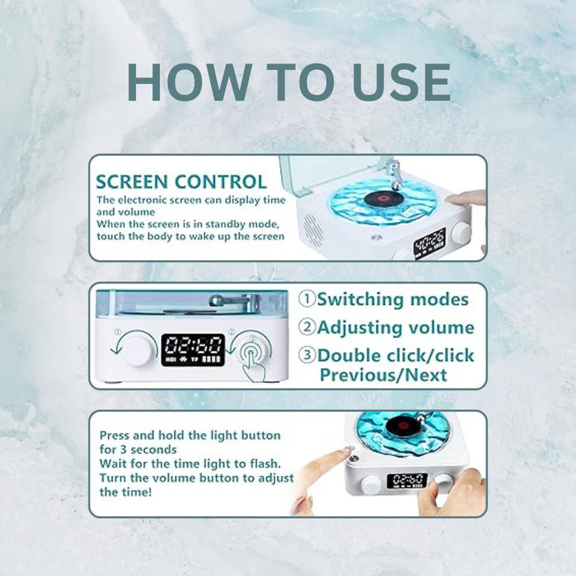 Meet the Waves Vinyl Speaker — a retro-inspired Bluetooth speaker designed to combine immersive sound, ambient lighting, and calming nature audio in one compact statement piece. With its rotating wave disc and soft breathing light, it transforms any space into a mood-driven listening experience.